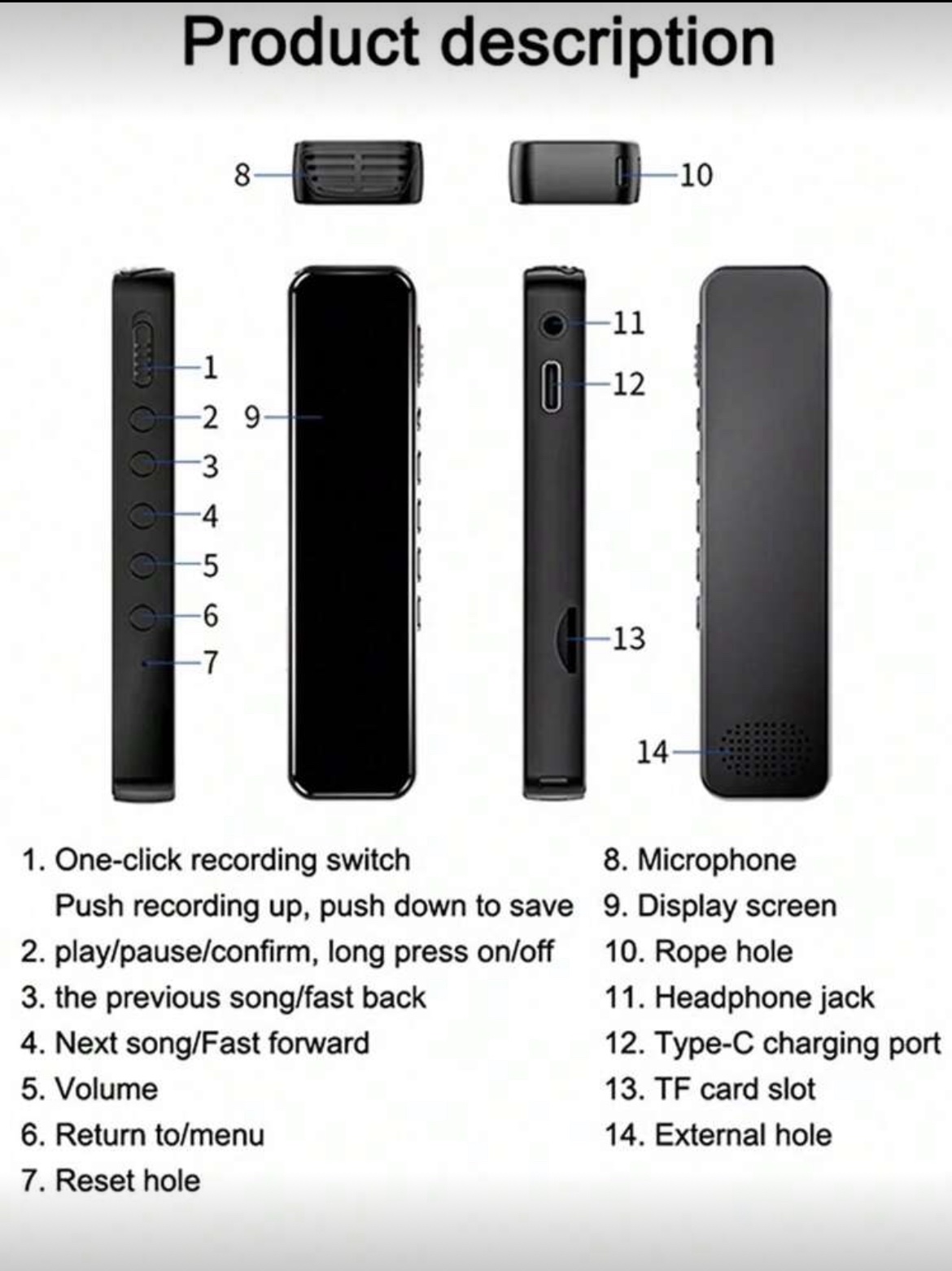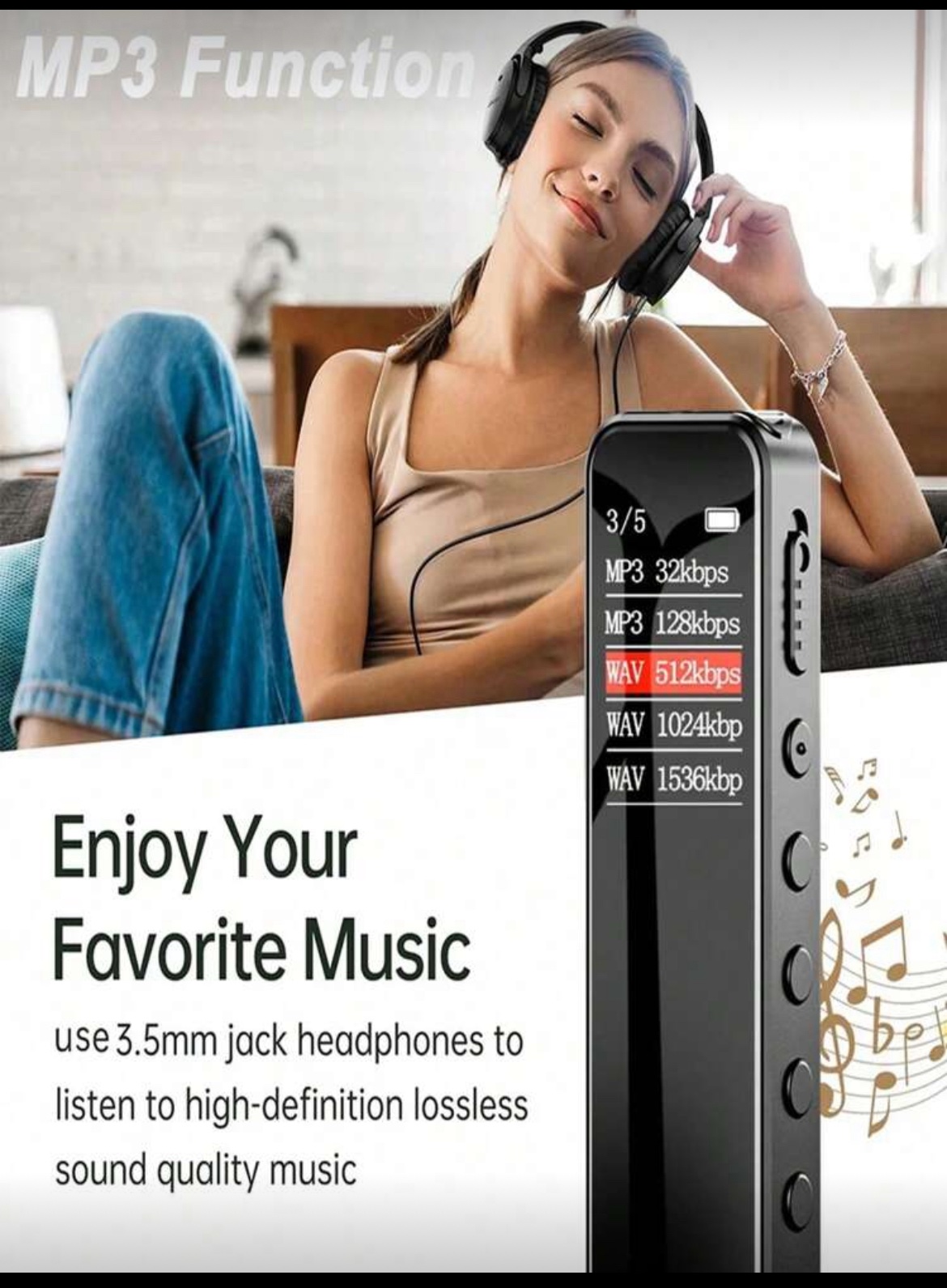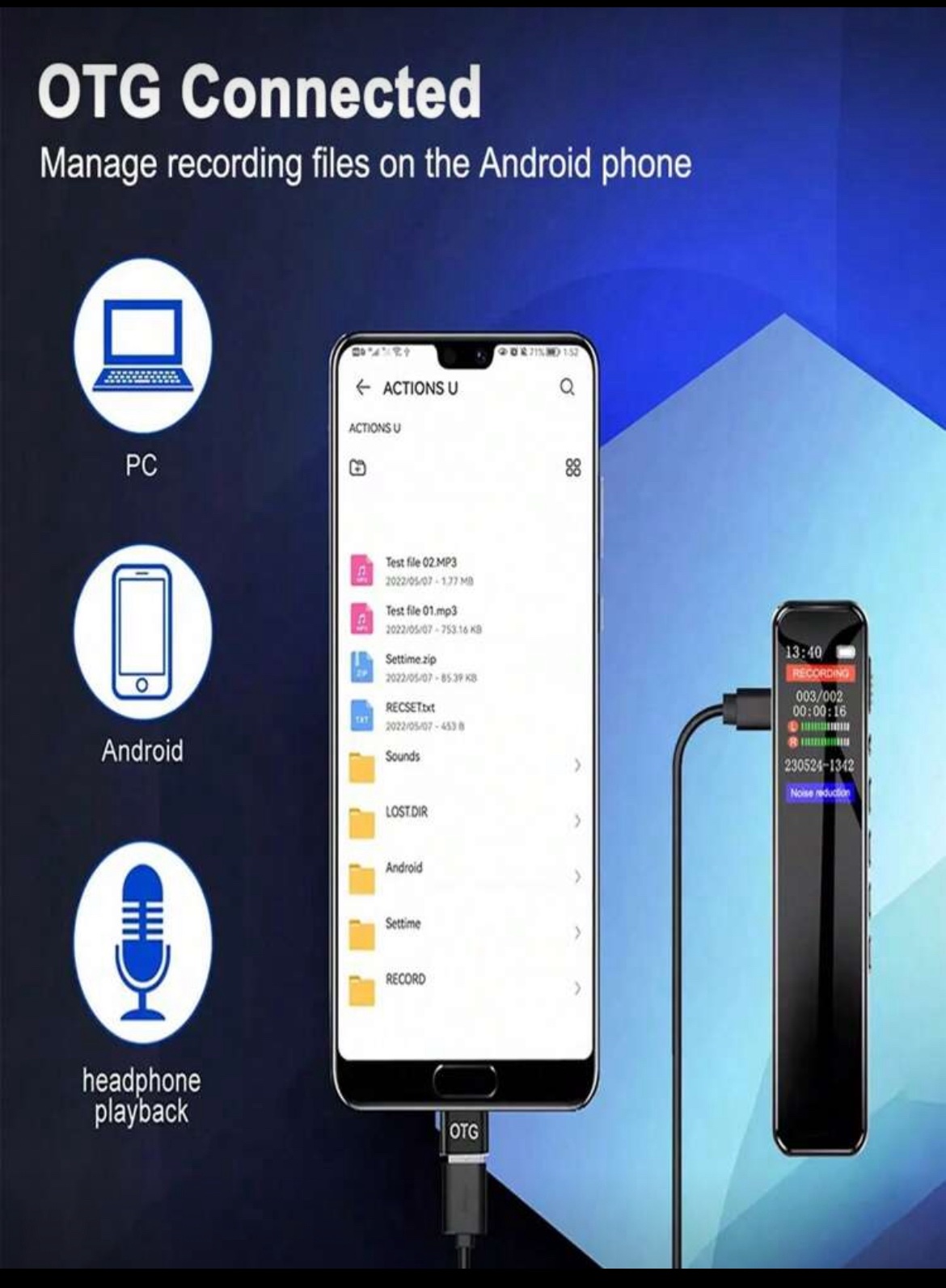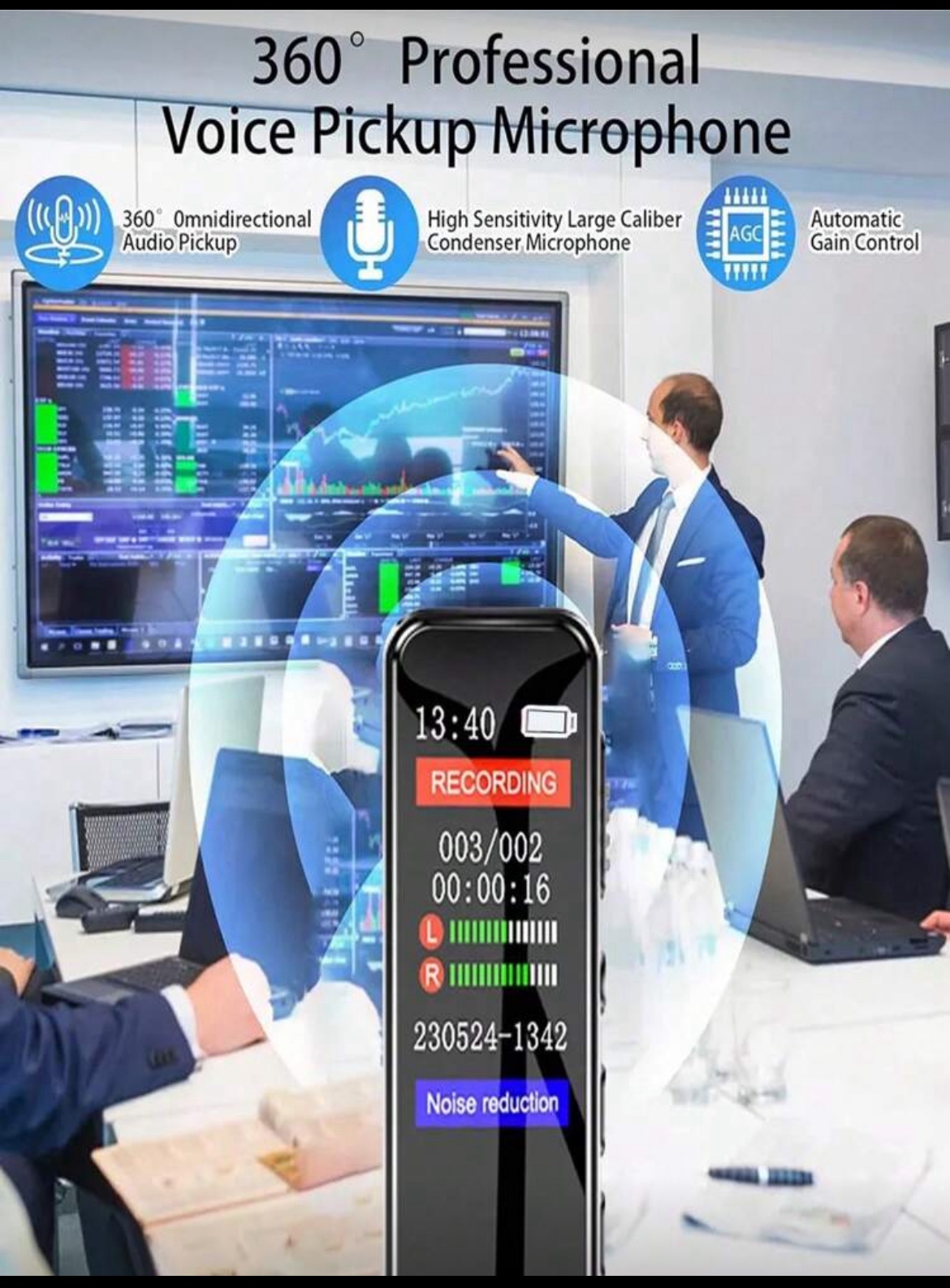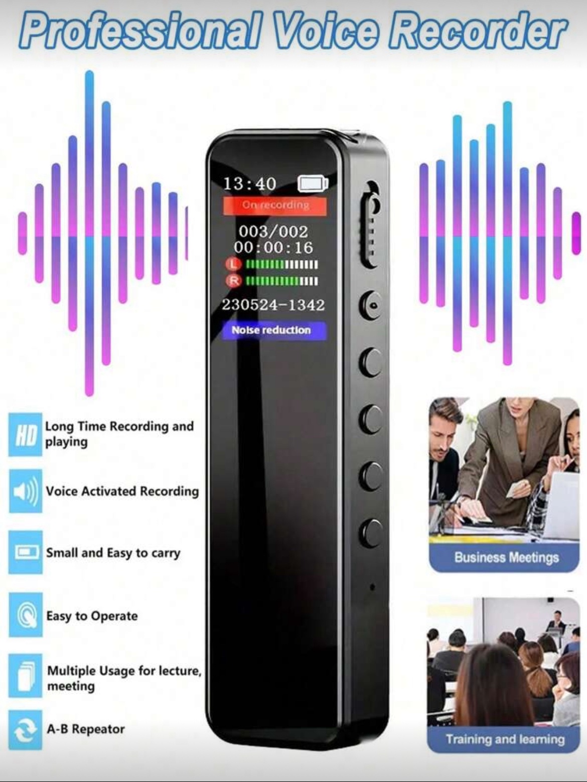 جهاز تسجيل رقمي مع وظيفة التشغيل، مزود بخاصية تقليل الضوضاء وجودة صوت عالية الدقة 1536 كيلو بايت في الثانية، جهاز تسجيل محمول مناسب للمحاضرات والاجتماعات، بطارية ليثيوم قابلة للشحن 230 ملي أمبير، جهاز تسجيل صغير للتسجيل لفترات طويلة في الفصول الدراسية، يدعم تشغيل موسيقى MP3